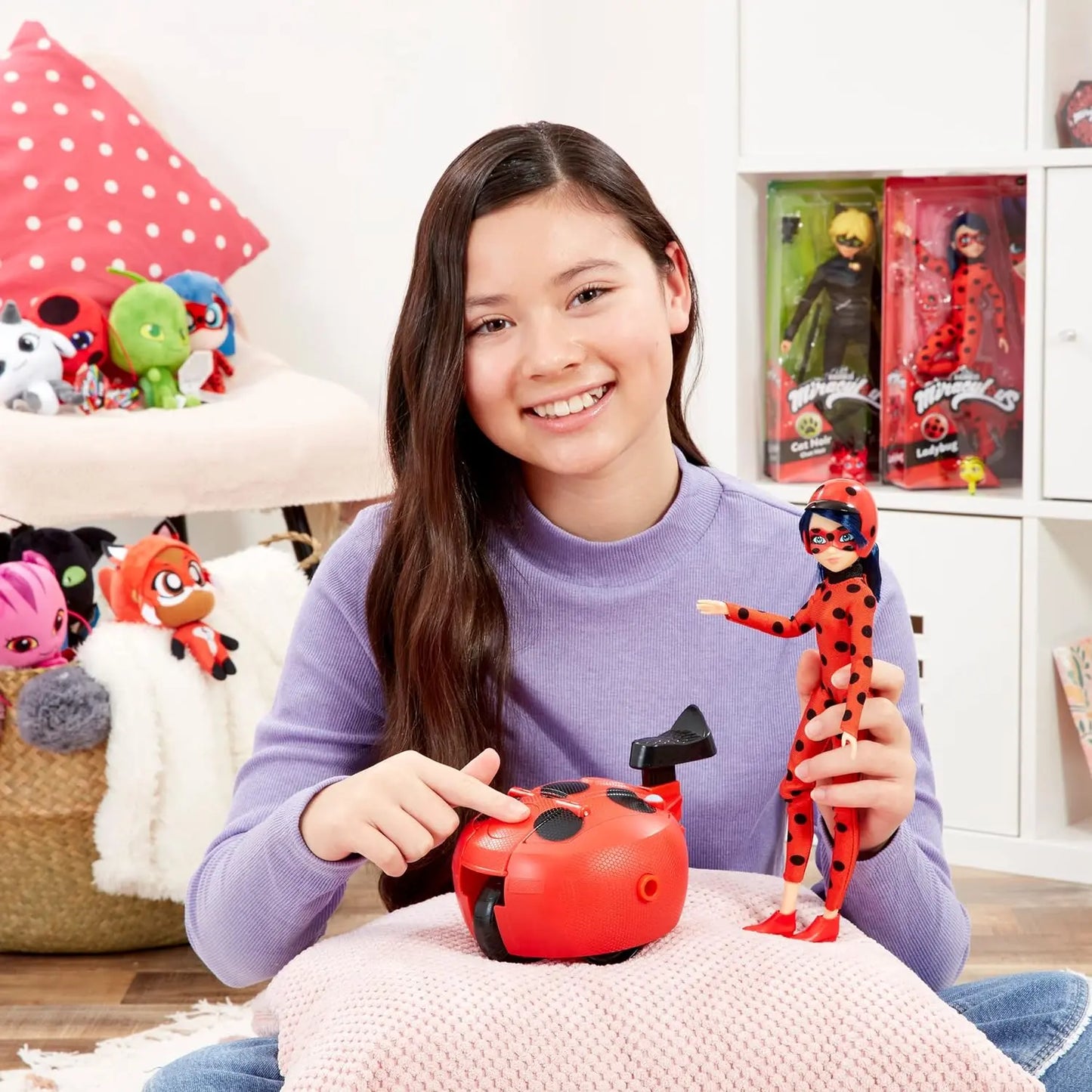 Défendez Paris face au terrible Papillon avec l'univers Miraculous et les poupées mannequins 26 cm de Bandai. Ces parfaites répliques des objets et personnages de la série sont articulées pour pouvoir recréer vos moments préférés ! Ici, retrouvez Marinette, l'héroïne de Miraculous dans son costume de Ladybug Lucky Charm, accompagnée de son scooter pour parcourir les rues de Paris. Le scooter Switch'n go se monte et se démonte très facilement et rapidement grâce au mécanisme. Sa forme de yoyo quand il est replié est idéale pour le transporter partout durant vos aventures ! Quand à la poupée Ladybug Lucky Charm, sa combinaison et ses chaussures sont amovibles et ses cheveux sont coiffables. Retrouvez toute la collection Miraculous de Bandai !