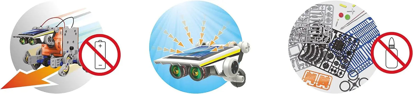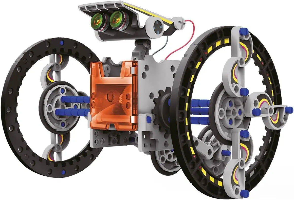 - Assemble les pièces et construis un robot fonctionnant à l’énergie solaire