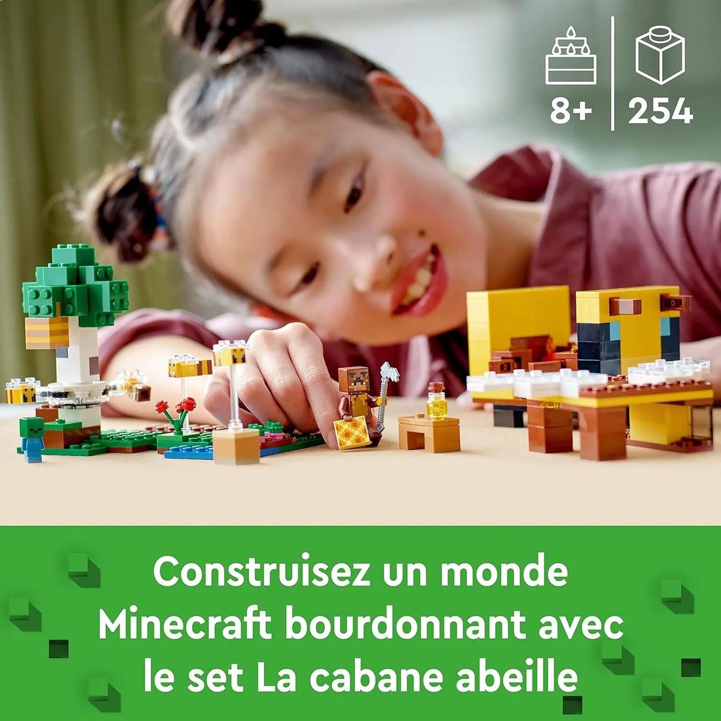 - Cette chouette maison LEGO Minecraft La Cabane Abeille à construire comprend le personnage du joueur Honey Bear, un bébé zombie, 3 abeilles et une figurine d'abeille en colère